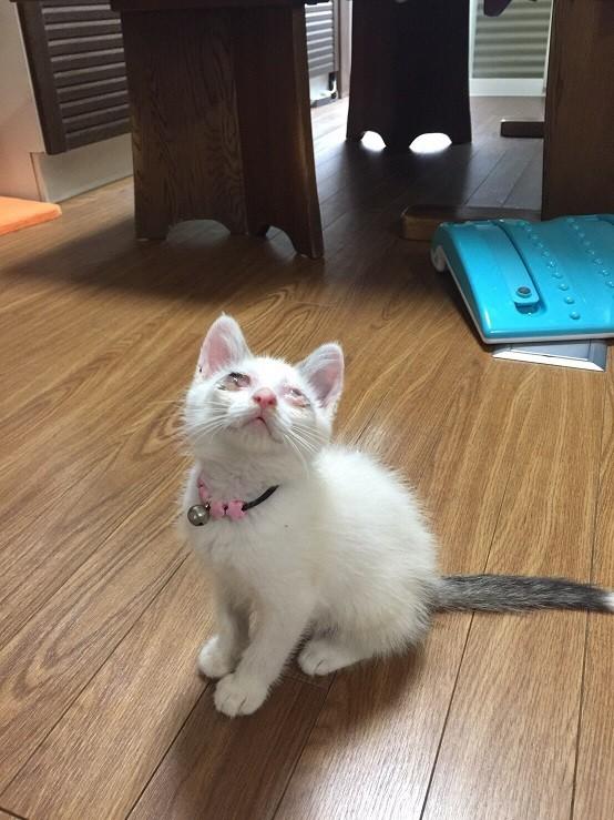 もう片方は瞬膜が眼球を覆い、光は感じているかもしれませんが視力はありません