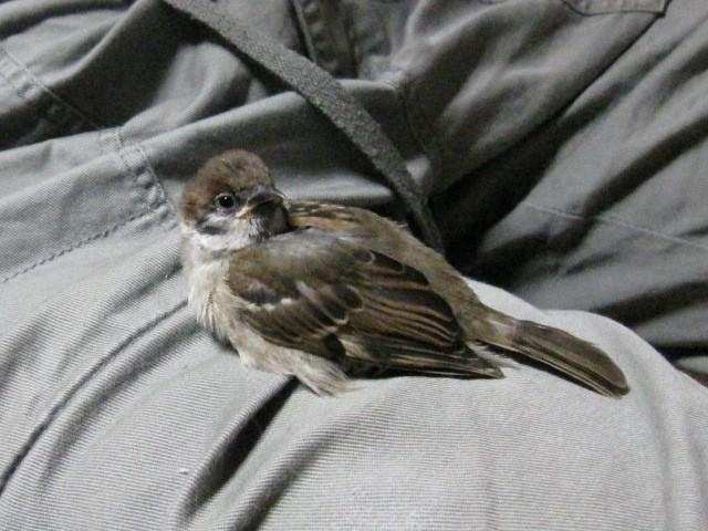 次の日、パンを小さくして並べました。天然者は網戸越しのヂュッピーには目もくれず、一心不乱に食べ尽くし、あっという間に飛び去りました。