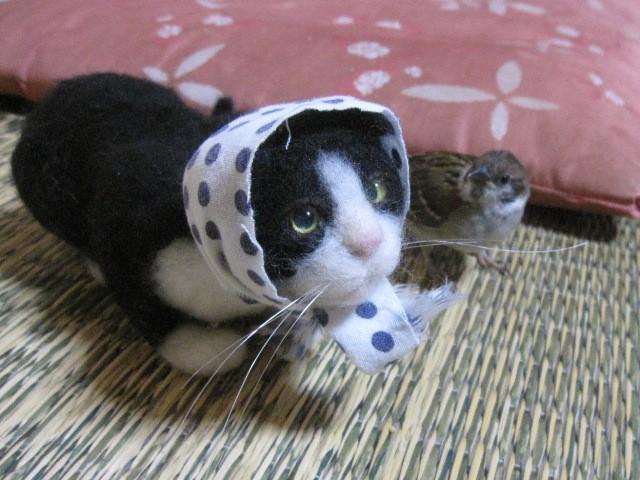 ダンナが大好きで、ほとんど胡坐の上で、ズボンの紐を引っ張ったり、ほつれかけた縫い目をつついて遊んでいます。