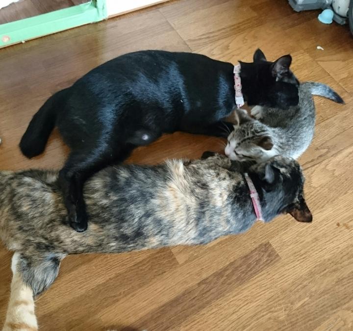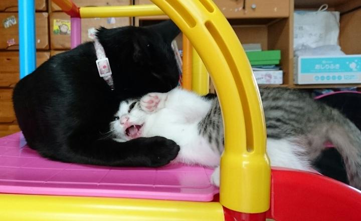 それでも噛みついてくるチビとらを必死にペロペロ(笑)