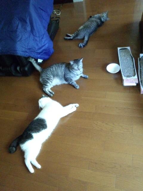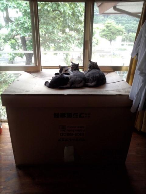 今 みんなのお気に入りは縁側の段ボールにON♪