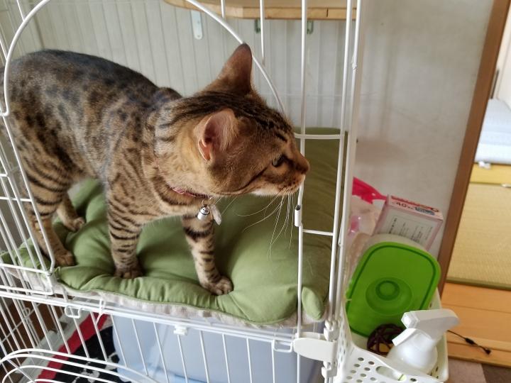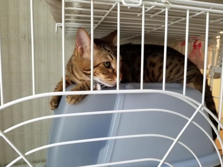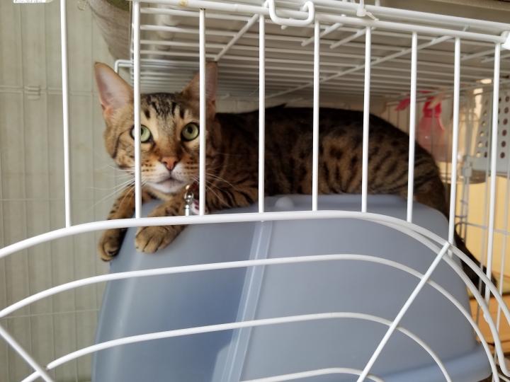 ケージでお留守番中です。