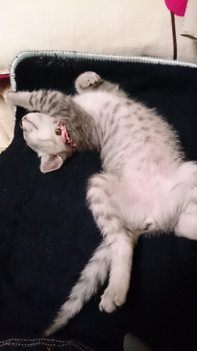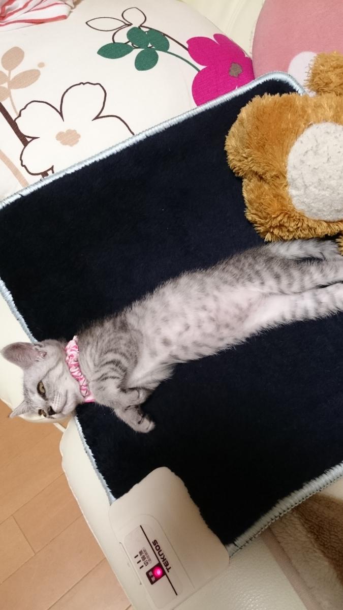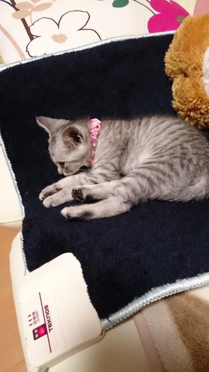 慌ててホットカーペットを出して寝かせてみたら喜んで寝転びます。