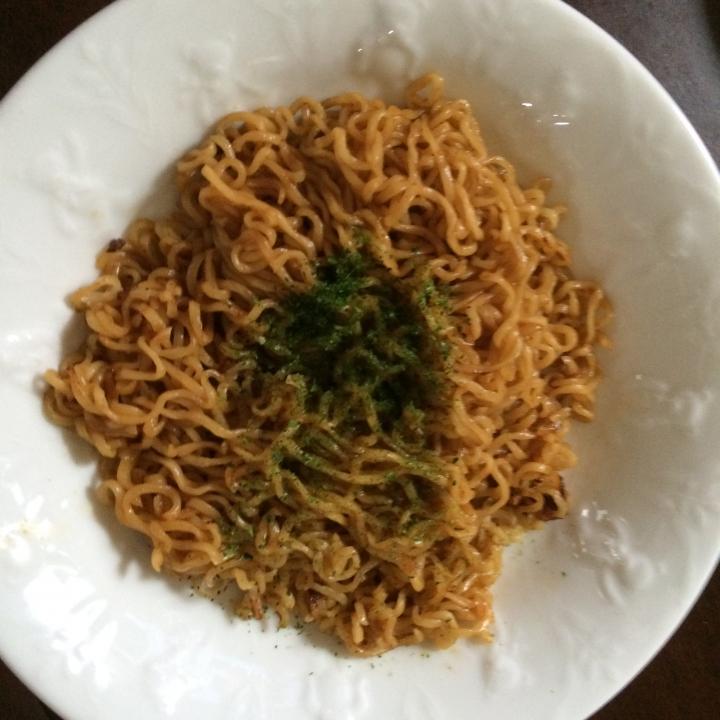 「いんすたんとのやきそばにあおのりをかけただけなのよ~」
