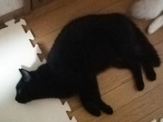 らんちゃん、せっかく雨のおかげで猛暑から開放されたというのにお昼寝ができない