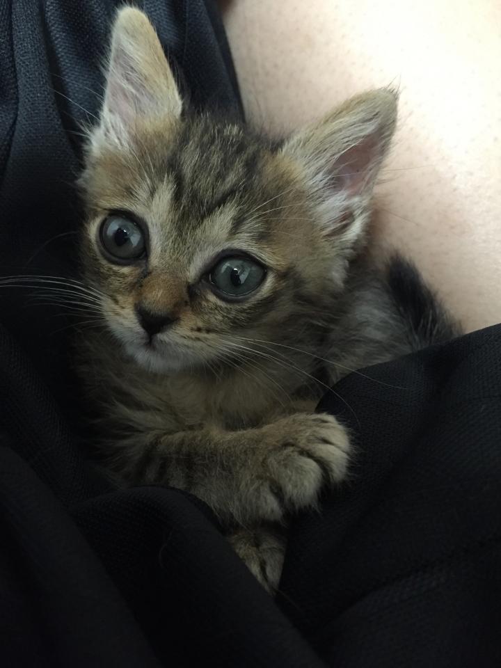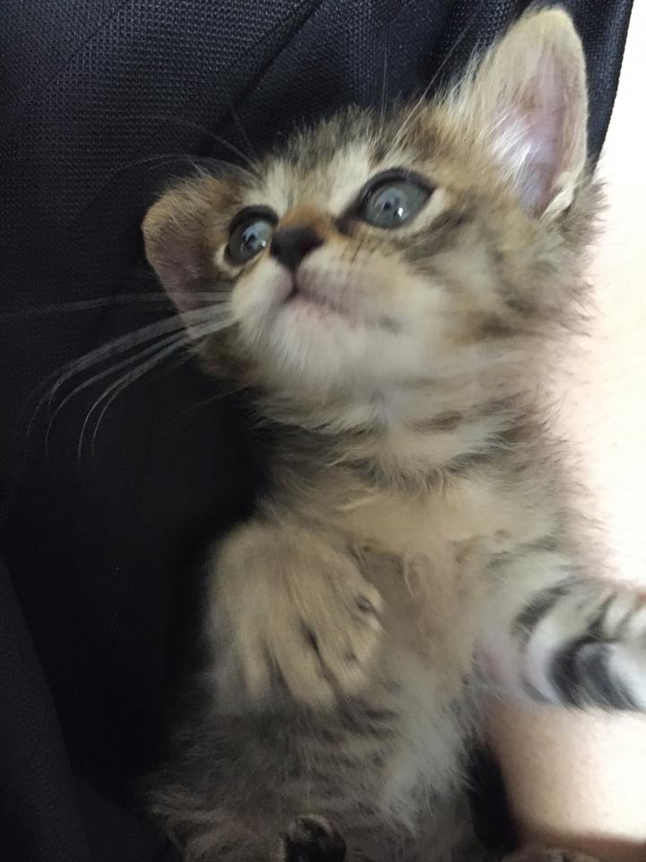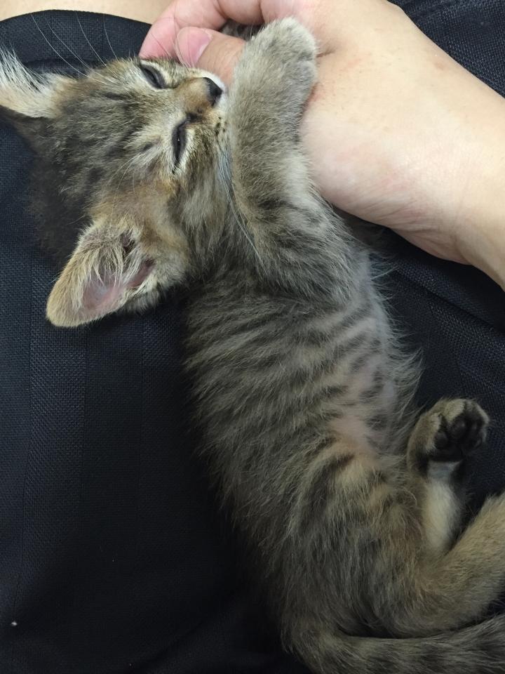 母親の母乳を1週間程度しか飲んでいないため、体も弱く成長も遅れるとのこと。今後の予定では7月の終わりに1回目のワクチン、8月の終わりに2回目のワクチンを打ち、念のため虫下しを飲む。9月か10月頃に一度エイズと白血病の検査をするということ。(親もその親も野良猫のため)