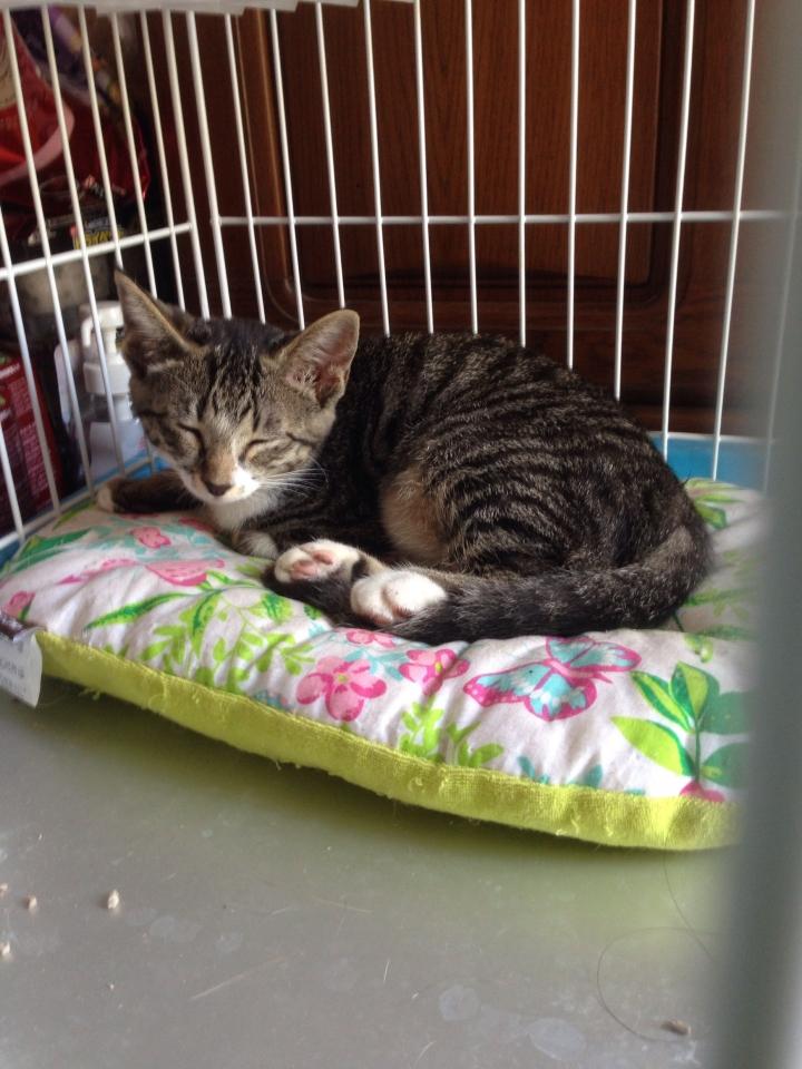 ちょっと可哀想ですが、余り他の猫と遊んで動きまわらない様に、今日はゲージの中で過ごさせます。