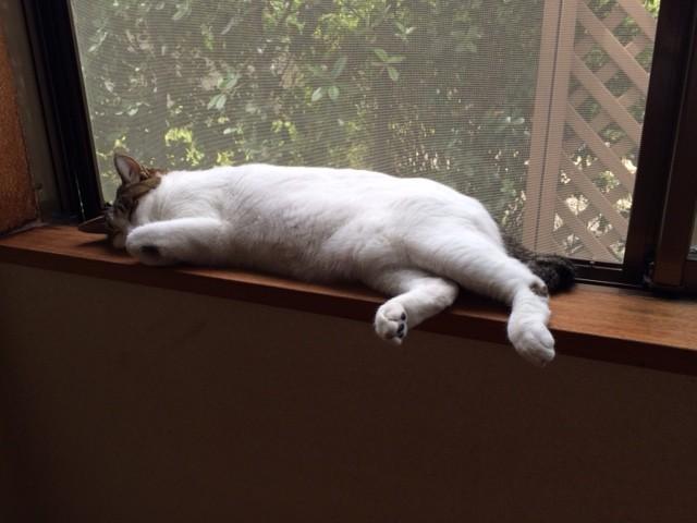 涼しい所で寝ています。 夏痩せなんて無縁です。