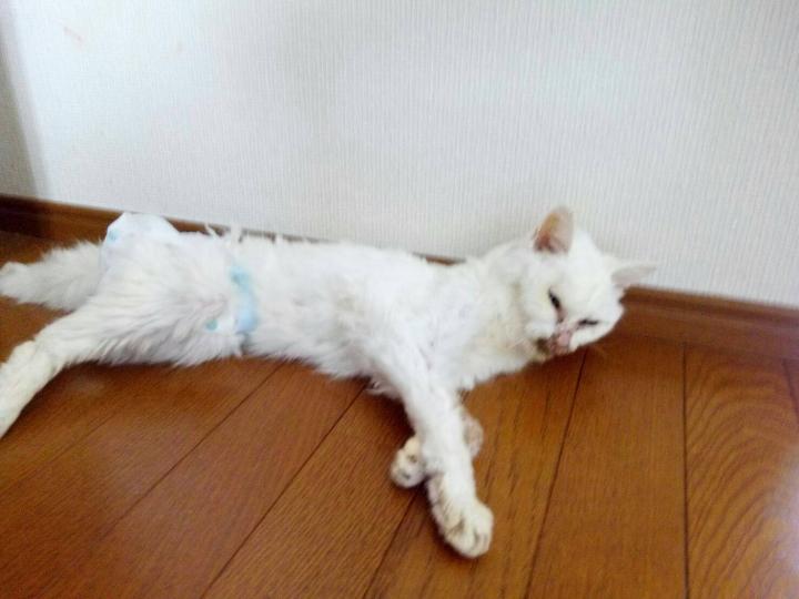 昨日、ミカンはとうとう足腰が立たなくなってオムツにしたと、