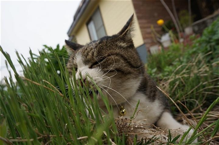 草が僕の鼻を刺激する〜〜。