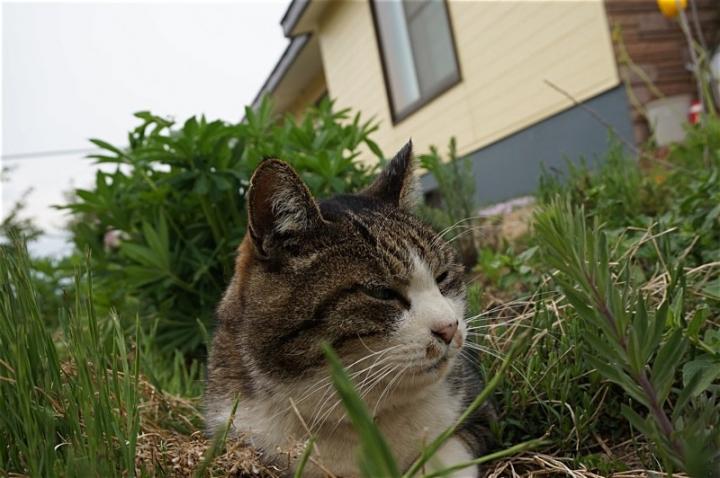 草むらで寝転がったので、そこを撫でなで。