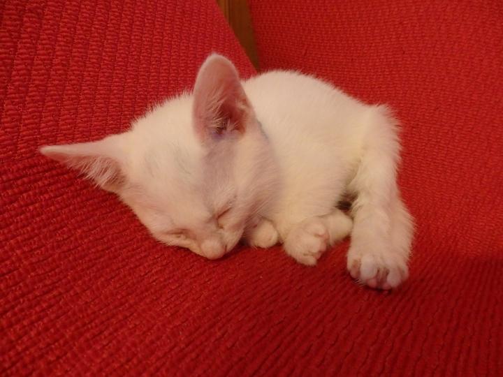 まだ1カ月半くらいかと思ってたけど、メス猫の体重からして推定2カ月位だそう。