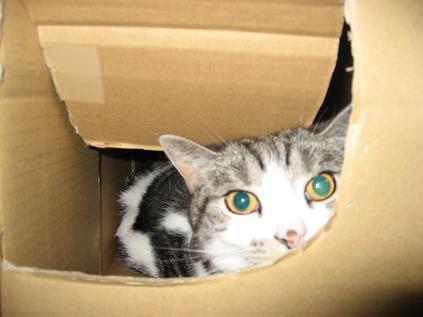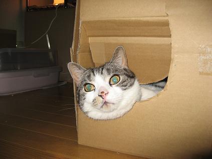 先に歩いてダンボール箱に潜り込みます