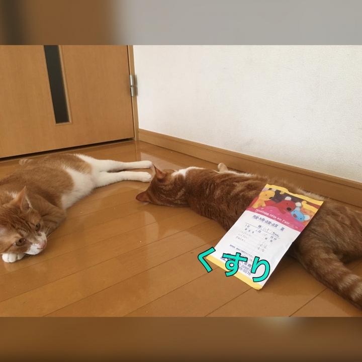 あと5日これが続くのにムギは元気になるのかな?くうもむぎの様子が心配みたいで遊びたいのを我慢して(笑)寄りそいながらねんね。薬飲まされてる時も頭で私の手を押しながら邪魔する。
