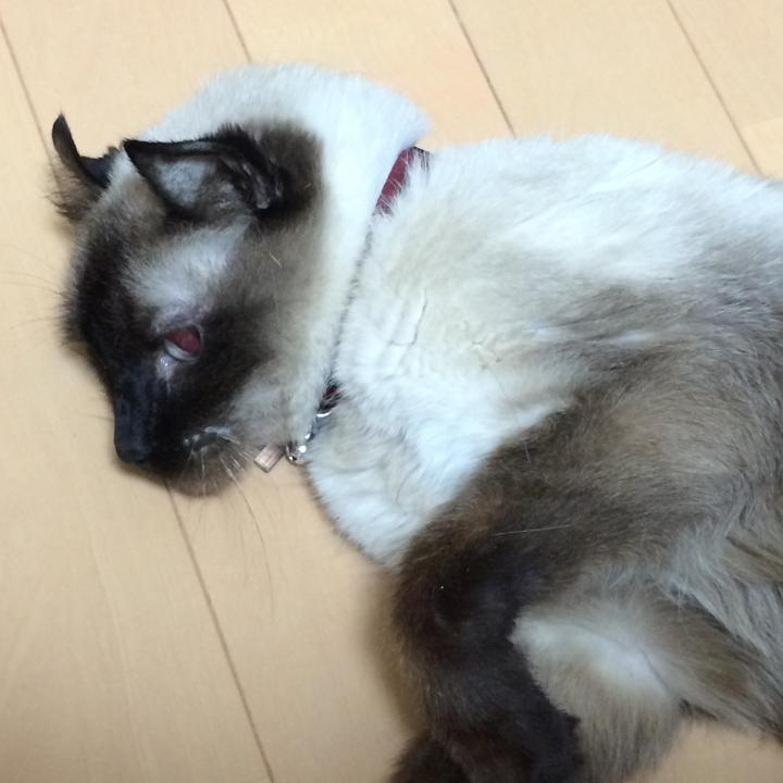 何故かペットシーツには直接寝たがらない困ったちーすけ君です。