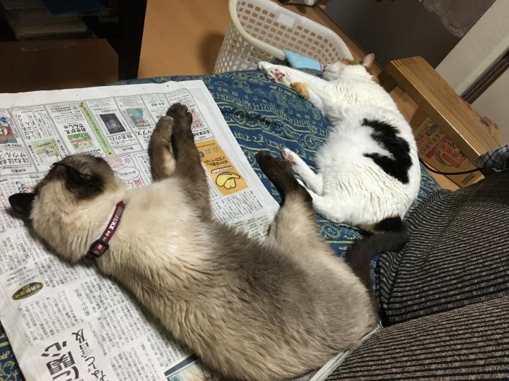ちーすけがくつろぐ場所には常に新聞紙が。