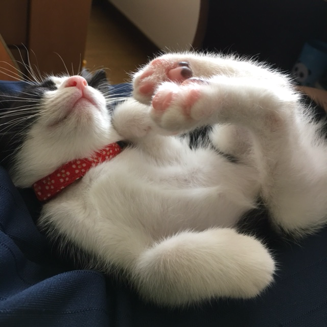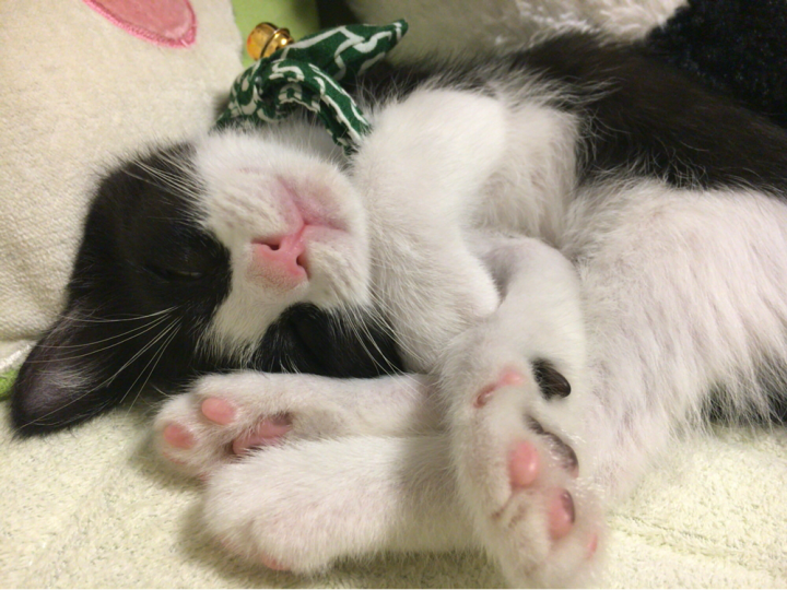 毎日のほとんどを寝て過ごしていますが、とっても人懐っこく、ご飯もモリモリ食べて、元気いっぱいなので家族のアイドルと化しています。(笑)