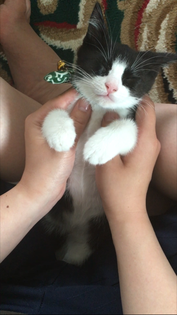 『しばらく鳴いていましたが、部屋に連れて行って撫でてるとゴロゴロ鳴きながらあっという間に夢の中へ…(笑)