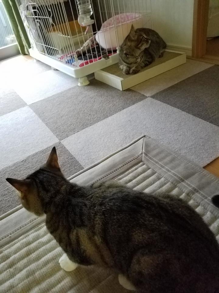 そのうちリビングのケージにいるポンちゃんまで鳴き出す始末😖