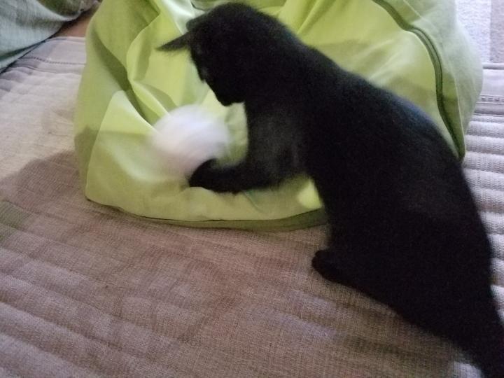 ボール遊びとビーズクッションの感触が好きなポンちゃんは、同時にどちらも楽しんでる😄