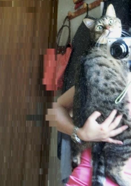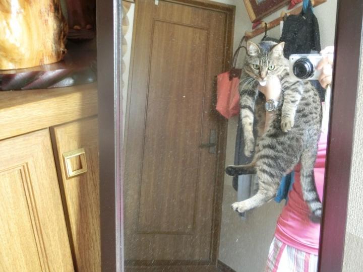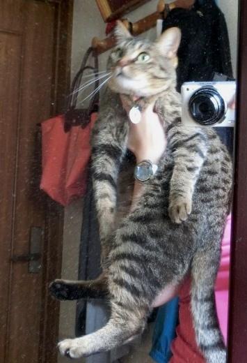 私の体(というかお腹)に押し付けるように力強く抱くと本猫も安心するようです。