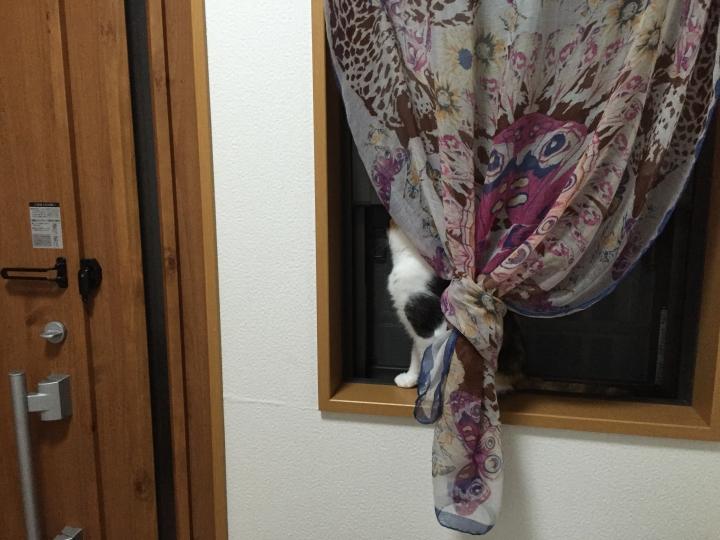 カーテンに隠れていたり、