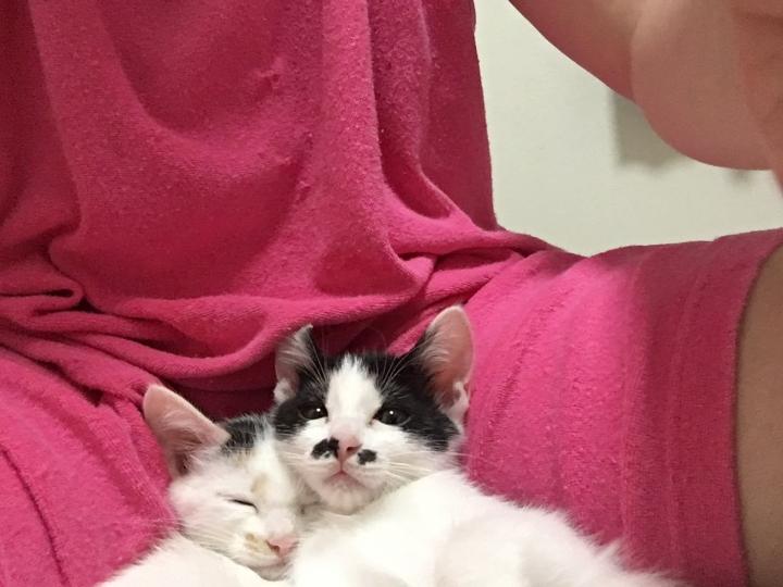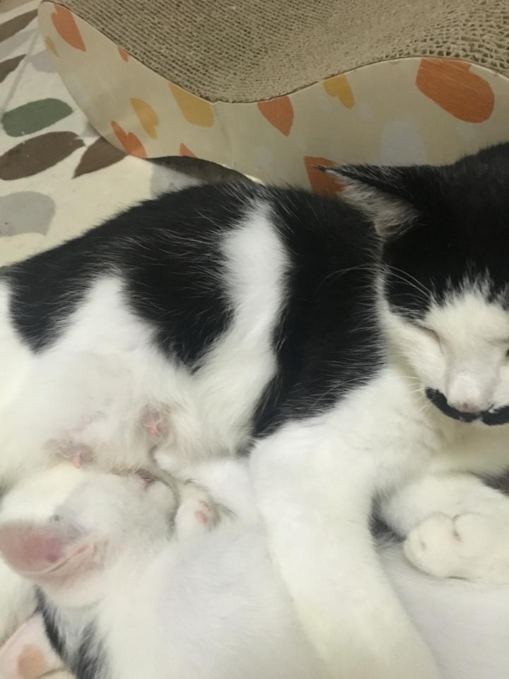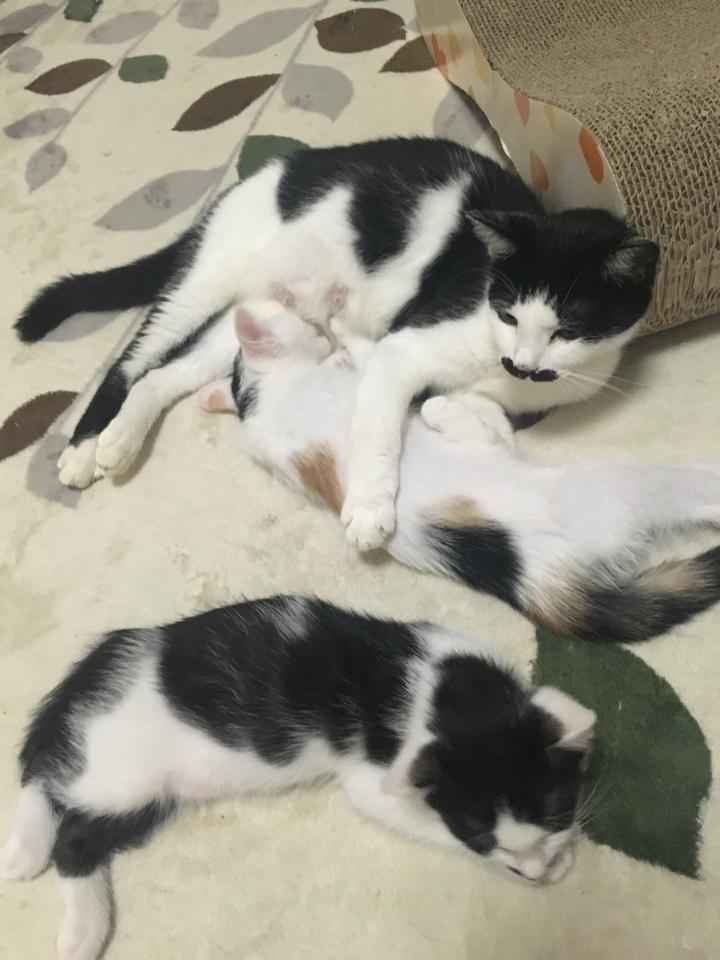 しろは、少食でおっぱい大好きで、ニャン太に甘えん坊。そしていつも、くろに負ける。よく鳴く