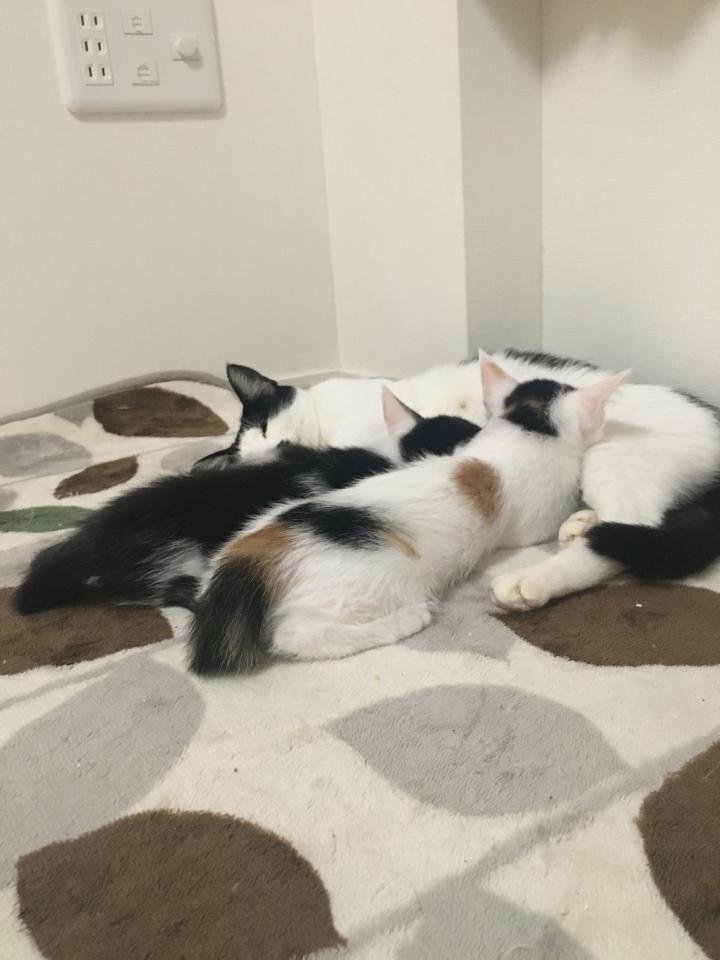 ニャン太が全員動かない。遊びに興味を示さない。育児疲れ??