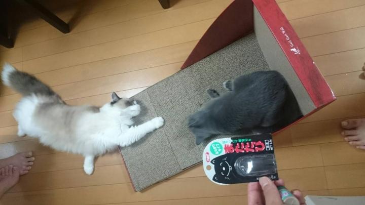 新しい爪とぎに頂きもののまたたびを少しふりかけたらやりました。