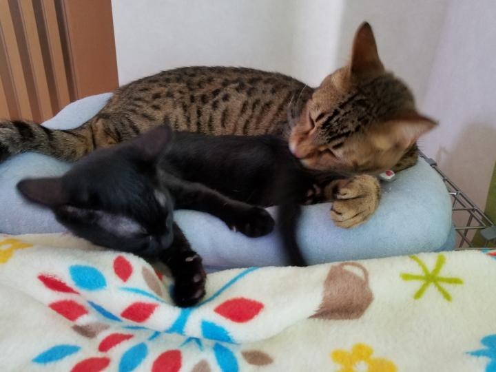 まだこどもだから、母猫のようにペロペロしてくれるなんて、まだまだ先の話なんでしょうね(と思いたい)。