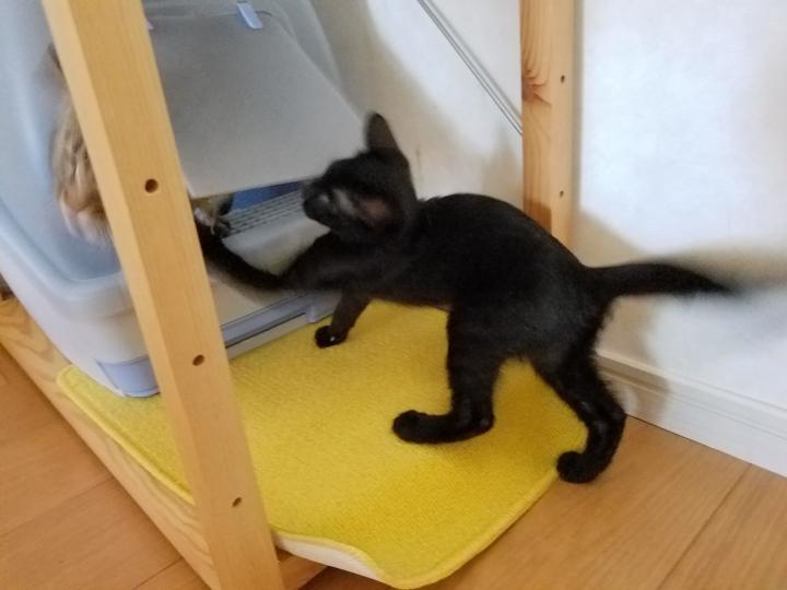 なんでかわからないけど、ドラニコサクちゃんがトイレに入ると、入り口でちょっかい出します。