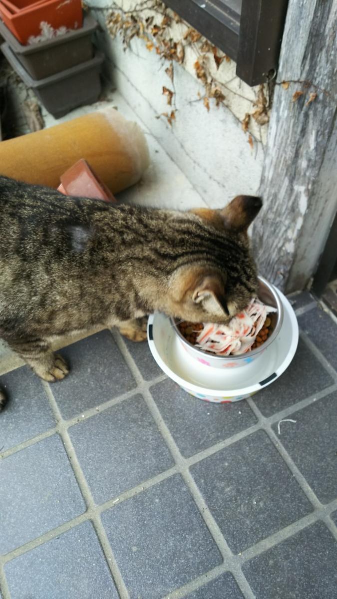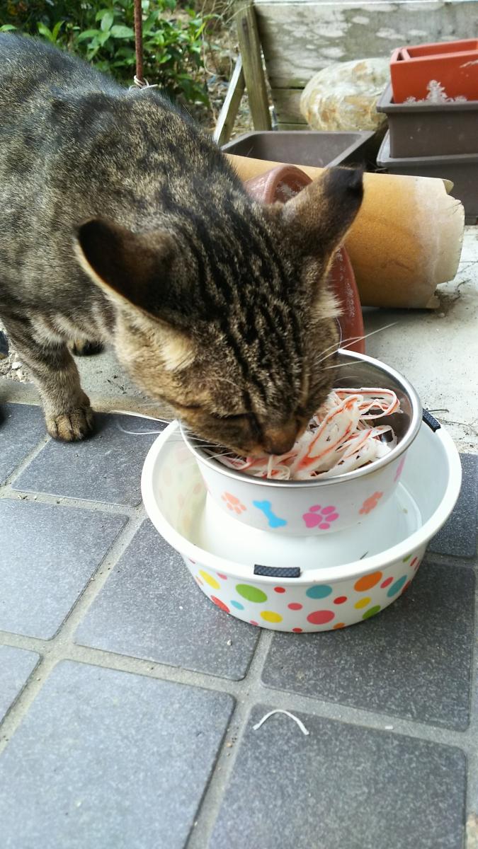 カニかまを持って少し離れて食べてました😿