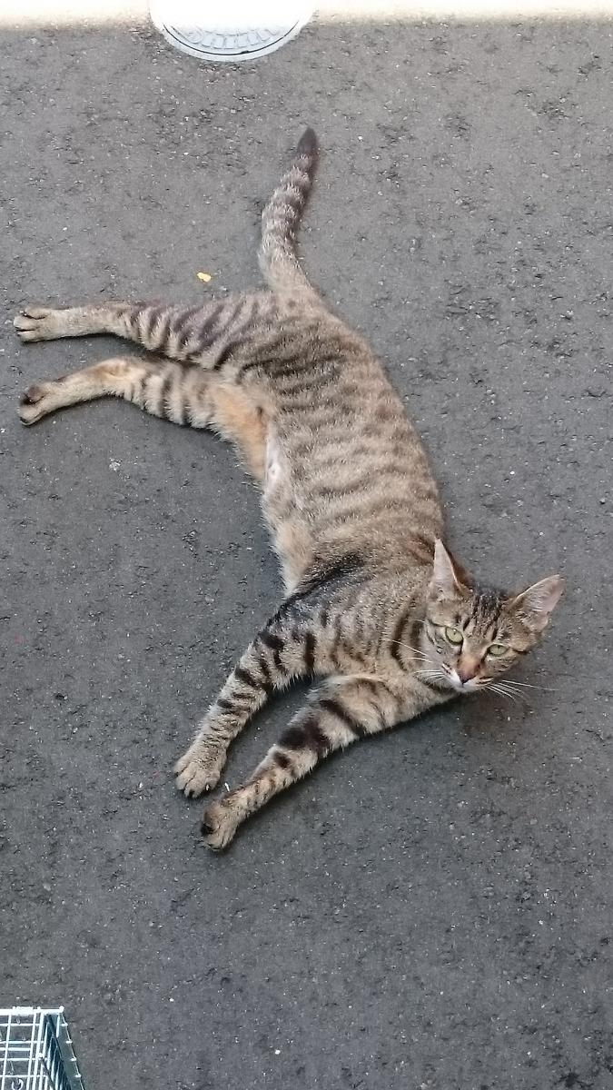 捕獲器に入ったときは、興奮していたので、リリース直後はトラウマになって暫く寄り付かないだろう…と思ってましたが、そんなことはなく、いつもの場所でゴロリンとしてごはんのおねだりしてきました。