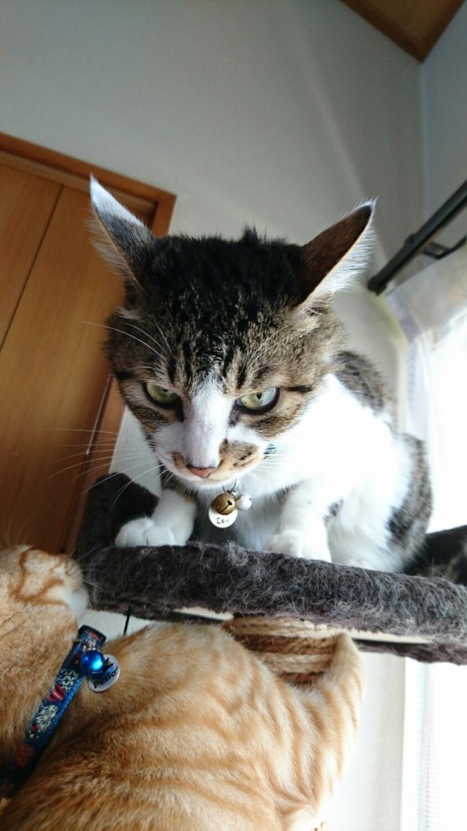 茶太郎が先に上がり、毛繕いも済ませた所にちょびが…!Σ(×_×;)!