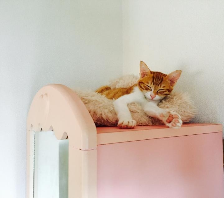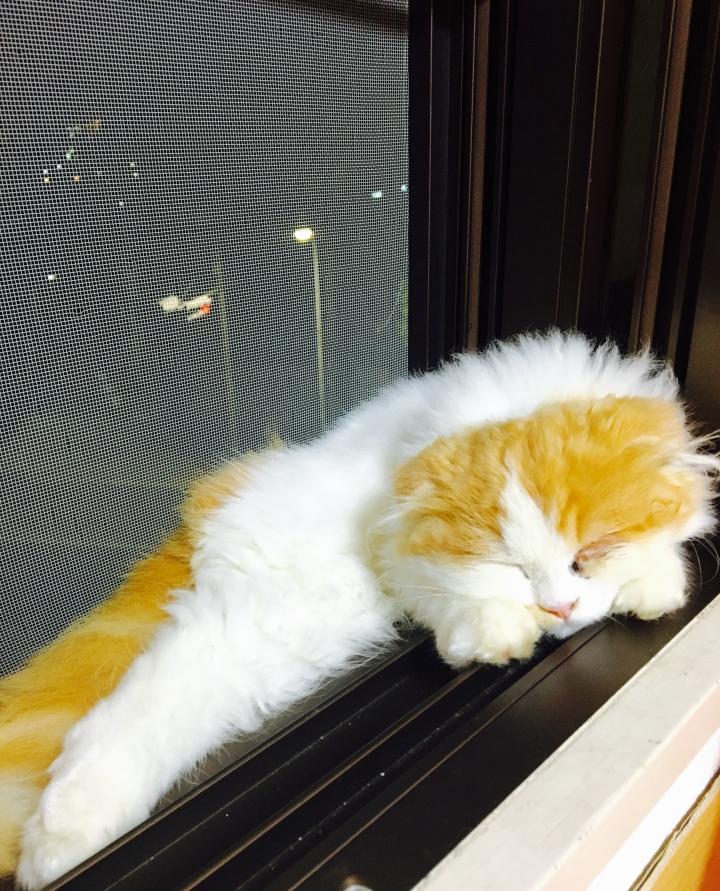 モコさん。。。娘の部屋の窓際に ( ̄▽ ̄)