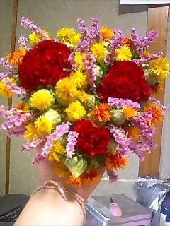 このままドライフラワーになっていいように、鶏頭と紅花とスターチス。
