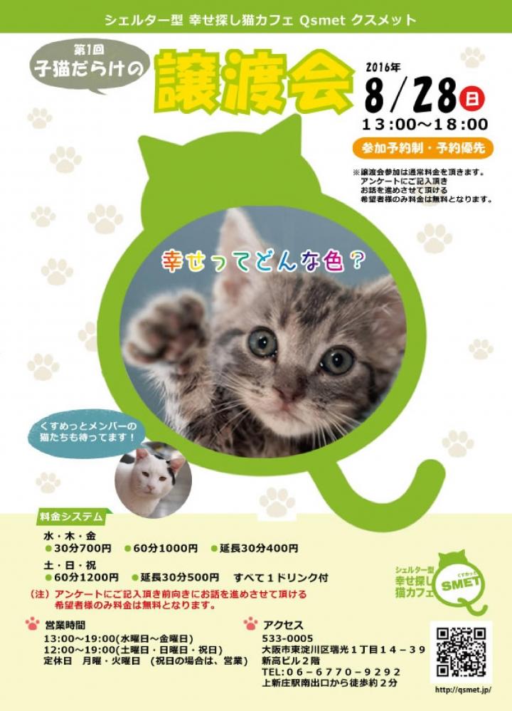 ブログにて、第一回子ねこだらけの譲渡会をします。