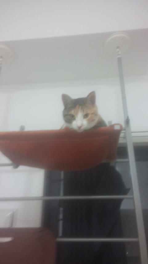 出張から帰ったら、キャットウォークのここたそにじっとみられてました。
