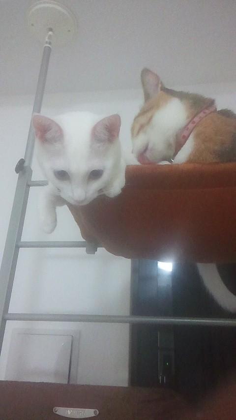 みきたそが登ってきたら、毛づくろいで歓迎してました。
