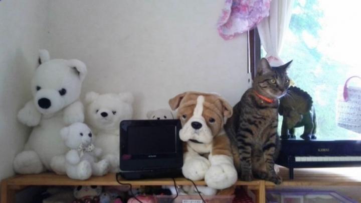 いつもここでぬいぐるみと同化して鳥を見ている。