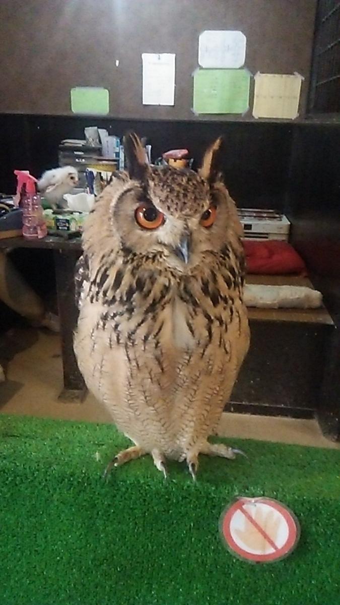 娘達とフクロウカフェに行ったら「この子、オリオンにそっくり(´ω`)可愛い」。