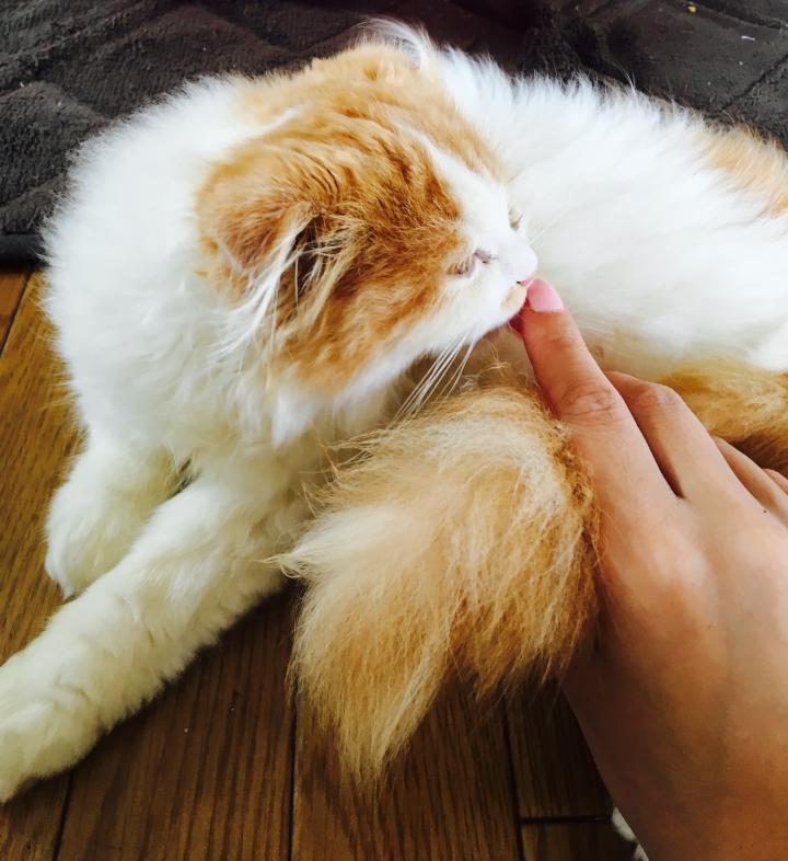 あるあるでグルーミング中に手を出すと一緒にペロペロ♪