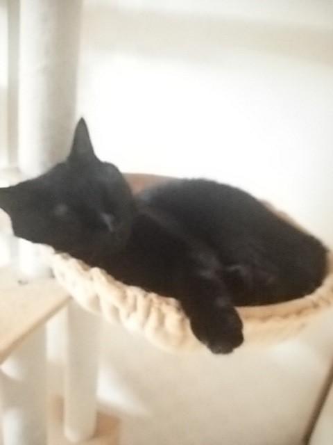 いつもバスケットで変な格好で寝ていますが、ちゃんと猫らしく寝ているときもありますよ。