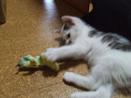 帰宅後、てんむす、屋根裏に子猫を移動。