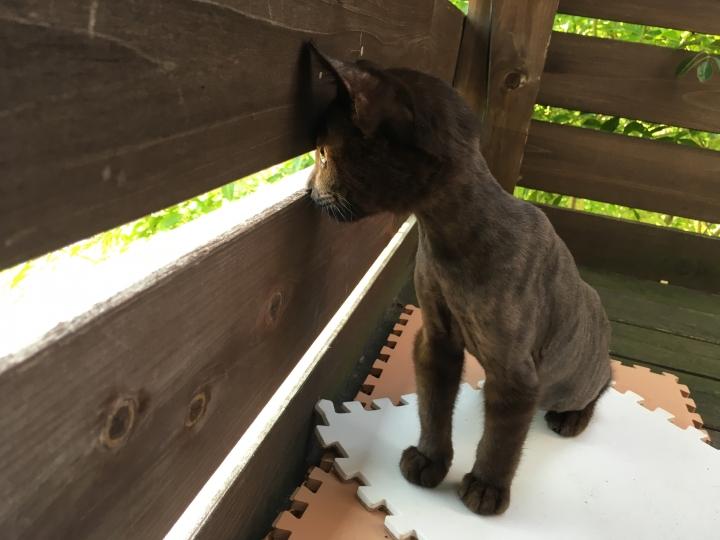 の前にちょこびたんはベランダでのびのび。