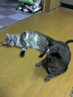 足蹴にして(しかも乗せてる)からかってるのか、しばらくそのまま・・・ぼたがすっごく情けない顔してます。