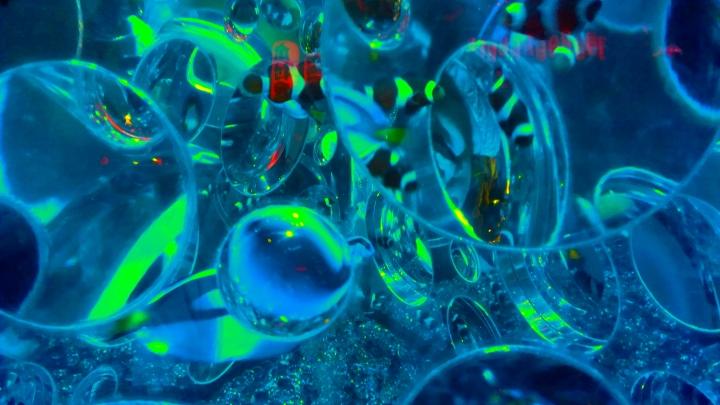 クマノミ水槽も幻想的。ニモとドリーのコラボ。