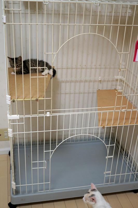 子猫が登れないであろう2段ケージを置いてみましたが。。。。