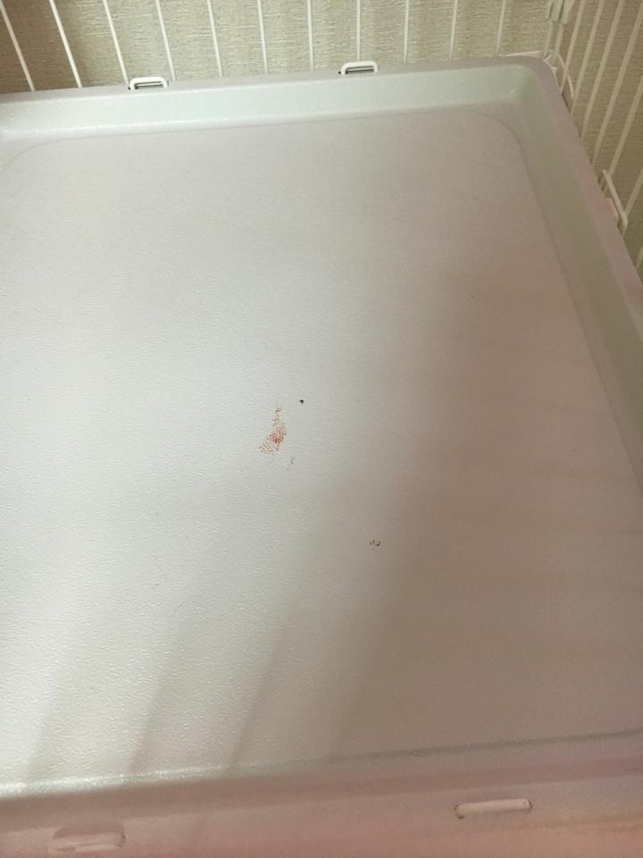 赤いなにかのシミ…これ血だよね!?と身体をさわさわしてもどこにも怪我なども無し…本人はケロッとしたものです