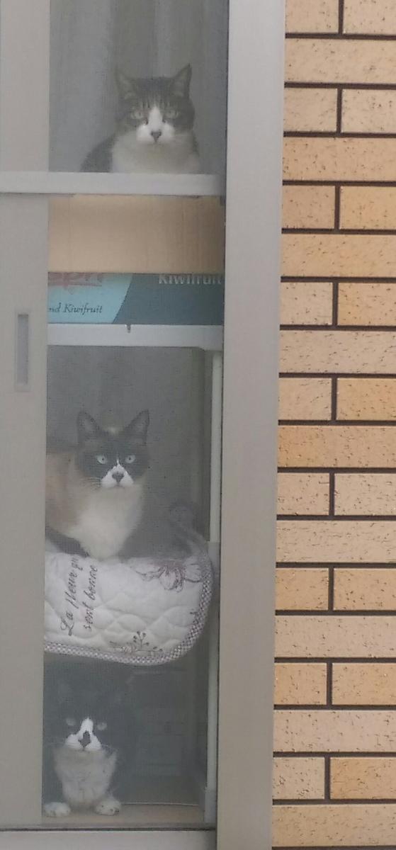 我が家の雄猫3匹、写真上から風太(普段はぶぅです)、ポン太、ソラ。